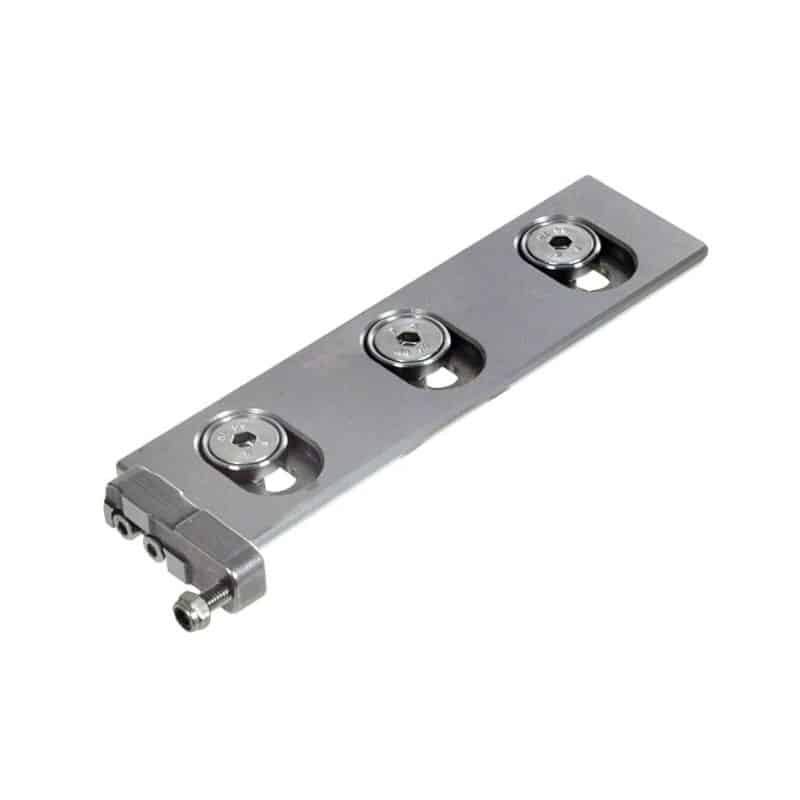 Élément de référence universel de 150 mm avec trous ovales, compatible avec toutes les machines équipées de tables comportant des trous M8 situés entre 30 et 40 mm du bord
