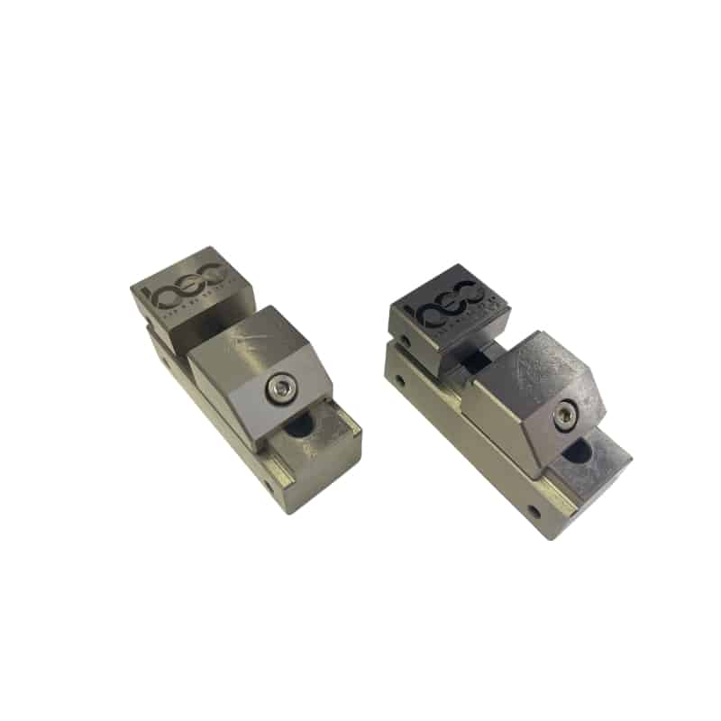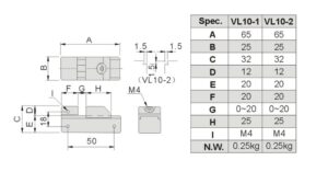 - Le modèle VL10-2 est doté de mâchoires à gorge étagée pour le serrage de pièces délicates.